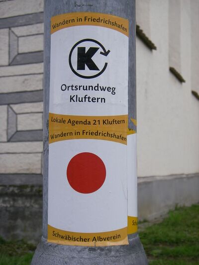 Der Ortsrundweg Kluftern (siehe Ortsrundweg ) ist ein Projekt, das auf Initiative Klufterner Künsterinnen und Künstler unter "Kunst in Kluftern KiK" 2003 entstanden ist und in Verbindung mit der Lokalen Agenda 21 Kluftern, des Landschaftsparks Bodensee-Oberschwaben, des OberschwabenKunstwegs, des BodenseeKulturraums und des Geschichtspfads Friedrichshafen weiter entwickelt wird.