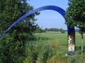 Auf der linken Seite nach der Brücke grüßt das erste Kunstwerk am Wege, das "Tor zum Nächsten" am Ortsrundweg